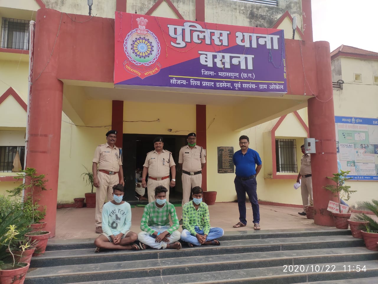 महासमुंद/बसना। आज दिनांक 22.10.20 को थाना बसना पुलिस द्वारा पुलिस अधीक्षक प्रफुल्ल कुमार ठाकुर के निर्देशन पर एवं अतिरिक्त पुलिस अधीक्षक मेघा टेंभुलकर एवं पुलिस अनुविभागीय अधिकारी विकास पाटले के कुशल मार्गदर्शन में निरीक्षक लेखराम ठाकुरथाना प्रभारी बसना के नेतृत्व में थाना बसना के अपराध कगांक 491/20 धारा 153(ए) भादवि के अज्ञात आरोपियो के द्वारा ग्राम छुईपाली (सिंघनपुर) के बोलोमुण्डा तालाब के पचरी में जाति सूचक शब्दो को लेखकर समाज को अपमानित करने के आरोपी-01. जयकुमार बुडेक पिता परमानंद बुडेक