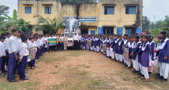 बसना: गज यात्रा के माध्यम से हाथी प्रभावित क्षेत्र के छात्र छात्राओं को जागरूक किया गया