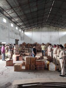 जहां मौके पर नितेश अग्रवाल के उक्त गोदाम का निरीक्षण किया गया नितेश अग्रवाल अपने गोदाम में विभिन्न प्रकार के पटाखो को पुट्ठे के कार्टुनो में व्यवस्थित करते मिला एवं पटाखा भण्डारण में सुरक्षा की दृष्टि से किसी भी प्रकार का समुचित प्रबंध नहीं पाया गया। जिसे मौके पर पटाखा भंडारण एवं विक्रय करने के संबंध में दस्तावेज पेश करने संबंधी धारा 91 जा0फौ0 का नोटिस देकर पुछताछ किया जिसने पटाखा रखने के संबंध में मौके पर कोई भी दस्तावेज पेश नहीं किया गया।