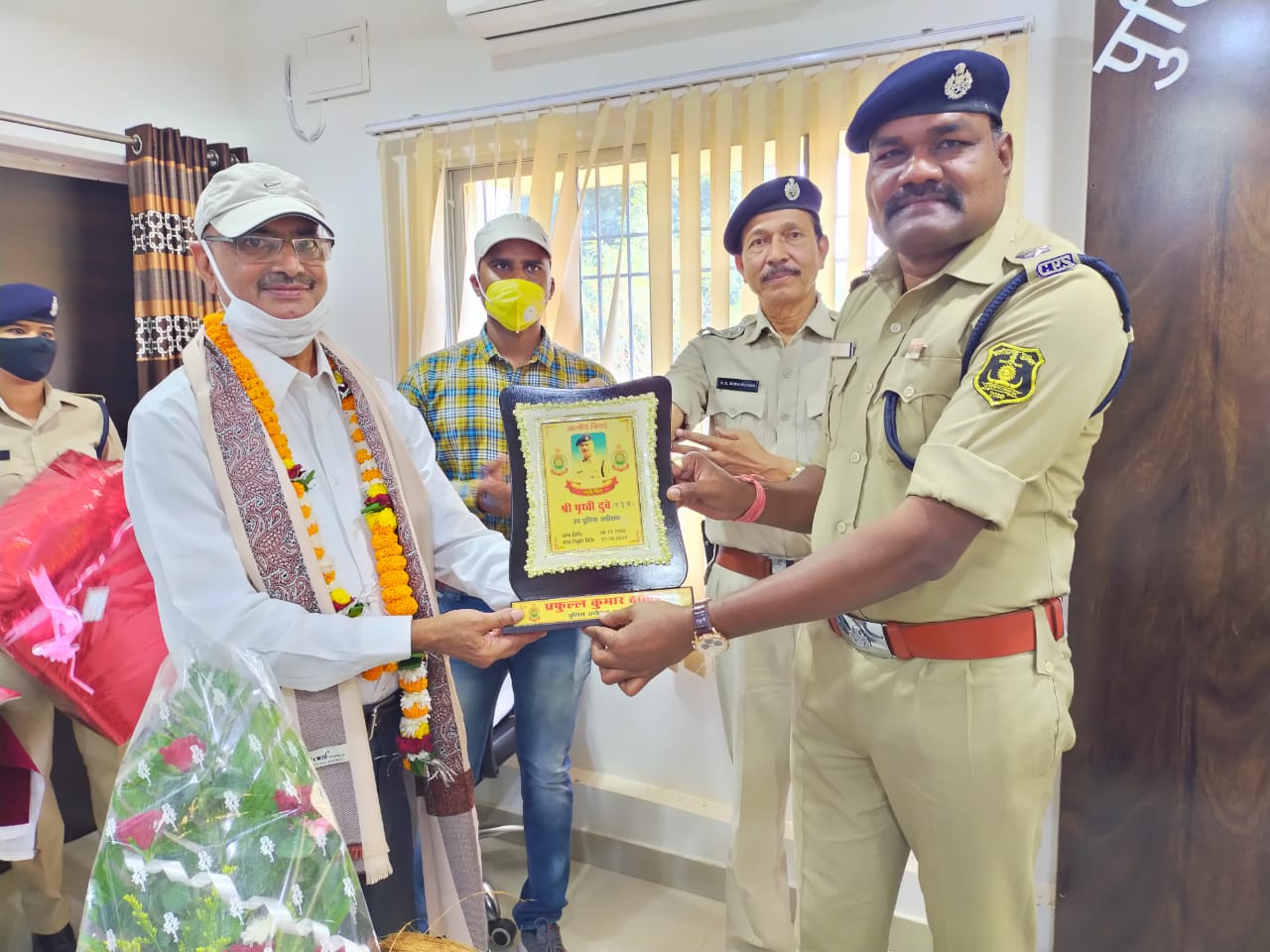 सेवानिवृत्त हुवे उप पुलिस अधीक्षक पृथ्वी दुबे, पुलिस कार्यालय महासमुंद में आयोजित विदाई समारोह में, दी गई ससम्मान विदाई