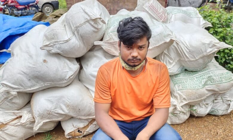 कि दिनांक 22/07/2021 को छत्तीसगढ उडिसा बार्डर अंतर्राज्यीय चेक पोस्ट रेहटीखोल थाना सिंघोडा मे उडिसा की ओर से आने वाले वाहनो की चेकिंग हेतु बल लगाकर चेकिंग किया जा रहा था इसी बीच उडिसा की ओर से आ रही एम एच पासिंग आयशर 1110 वाहन को रोकने का इशारा किया गया जो अपने वाहन को न रोककर तेजी से सरायपाली की ओर भगा दिया बार्डर पर तैनात जवानो द्वारा थाना प्रभारी सिंघोडा को सूचित करने पर थाना सिंघोडा स्टाफ के द्वारा उक्त वाहन को थाना के सामने रोकने का प्रयास किया गया जो वाहन चालक अपने वाहन को न रोककर सरायपाली की ओर तेजी से भागने लगा जिसे रोकने हेतु हाईवे पेट्रोलिंग को सूचना देने पर ग्राम छुईपाली मे एन एच 53 रोड को ब्लाक किया गया वाहन चालक द्वारा रोड ब्लाक देखकर अपने वाहन को ग्राम खरखरी की ओर भगा दिया गया जिसका पीछा कर ग्राम खरखरी मे रोका गया वाहन चालक से पूछताछ करने पर अपना नाम शुभम साहू पिता रूपचन्द्र साहू उम्र 27 साल साकिन प्लाट नंबर 69 गोधानी रोड़ जिंगाबाई तकली गायत्री नगर सचिन लेआउट थाना मनकापुर जिला नागपुर हॉल मुकाम कांति रोड उपलबाड़ी चुड़ा कम्पनी के पास थाना कपिल नगर जिला नागपुर महाराष्ट्र का रहने वाला बताया एवं पूछताछ पर वाहन आयशर 1110 क्रमांक एम एच 46 एफ 1882 मे धान भूसी कनकी बोरियो के नीचे छिपाकर गांजा परिवहन करना स्वीकार किया वाहन की तलाशी लेने पर वाहन के पीछे डाला मे धान भूसी कनकी बोरियो के नीचे 27 नग प्लास्टिक बोरियो मे भरा हुआ कुल 160 पैकेट अवैध मादक पदार्थ गांजा रखा हुआ मिला।