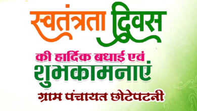 समस्त क्षेत्र वासियों को ग्राम पंचायत छोटेपटनी की ओर से 15 अगस्त स्वतंत्रता दिवस की हार्दिक शुभकामनाएं एवं बधाई
