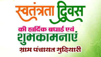 समस्त क्षेत्र वासियों को ग्राम पंचायत गुढ़ियारी की ओर से 15 अगस्त स्वतंत्रता दिवस की हार्दिक शुभकामनाएं एवं बधाई