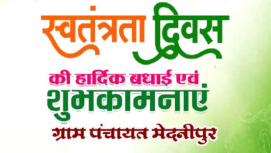 समस्त क्षेत्र वासियों को ग्राम पंचायत मेदनीपुर की ओर से 15 अगस्त स्वतंत्रता दिवस की हार्दिक शुभकामनाएं एवं बधाई