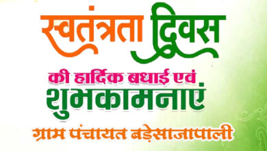 समस्त क्षेत्र वासियों को ग्राम पंचायत बड़ेसाजापाली की ओर से 15 अगस्त स्वतंत्रता दिवस की हार्दिक शुभकामनाएं एवं बधाई