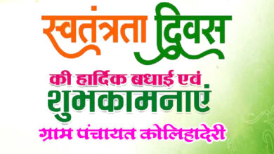समस्त क्षेत्र वासियों को ग्राम पंचायत कोलिहादेवरी की ओर से 15 अगस्त स्वतंत्रता दिवस की हार्दिक शुभकामनाएं एवं बधाई