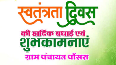 समस्त क्षेत्र वासियों को ग्राम पंचायत पौसरा की ओर से 15 अगस्त स्वतंत्रता दिवस की हार्दिक शुभकामनाएं एवं बधाई
