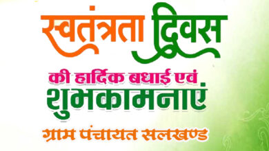 समस्त क्षेत्र वासियों को ग्राम पंचायत सलखण्ड की ओर से 15 अगस्त स्वतंत्रता दिवस की हार्दिक शुभकामनाएं एवं बधाई