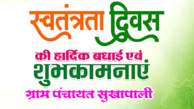 समस्त क्षेत्र वासियों को ग्राम पंचायत सुखापाली की ओर से 15 अगस्त स्वतंत्रता दिवस की हार्दिक शुभकामनाएं एवं बधाई