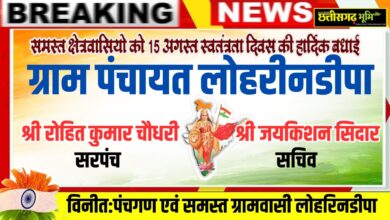 समस्त क्षेत्रवासियों को 15 अगस्त स्वतंत्रता दिवस की हार्दिक शुभकामनाएं एवं बधाई ग्राम पंचायत लोहरिनडीपा
