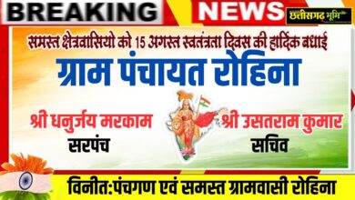 समस्त क्षेत्रवासियों को 15 अगस्त स्वतंत्रता दिवस की हार्दिक शुभकामनाएं एवं बधाई ग्राम पंचायत रोहिना