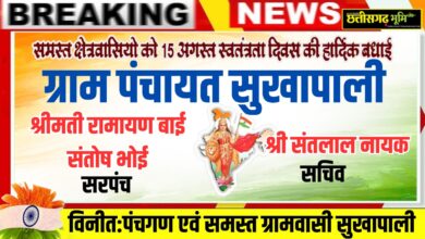 समस्त क्षेत्रवासियों को 15 अगस्त स्वतंत्रता दिवस की हार्दिक शुभकामनाएं एवं बधाई ग्राम पंचायत सुखापाली