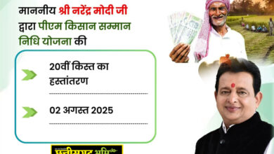 महासमुंद 02 अगस्त 2025: प्रधानमंत्री नरेन्द्र मोदी ने आज वाराणसी से किसान सम्मान निधि की 20वीं किस्त जारी की। जिसके…